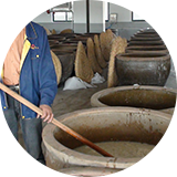自然發(fā)酵2-3個月左右,用墜石擠壓,48小時沉淀、殺菌、入庫